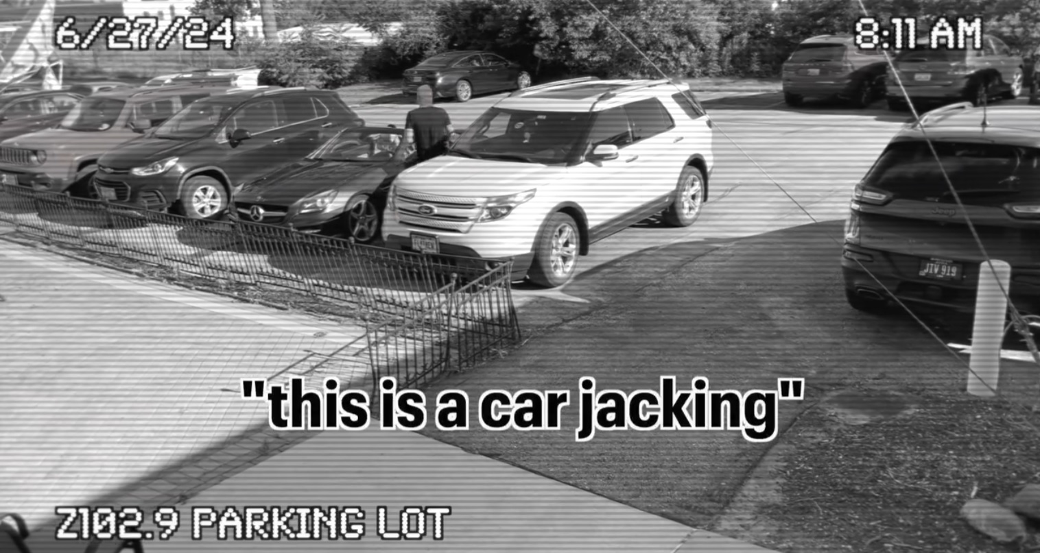 Watch as our hired car-jacker, Producer Ben, gets into the car!